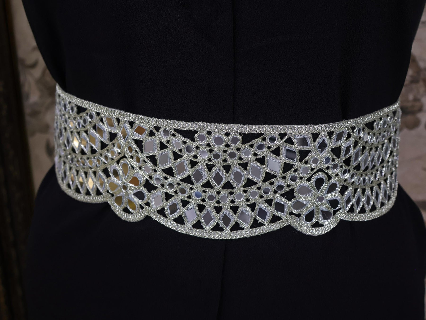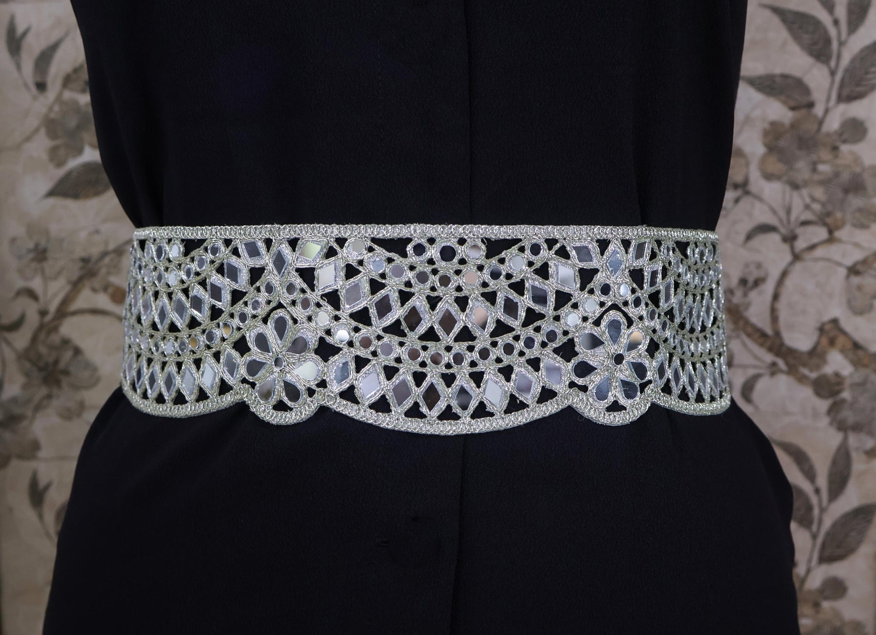 ✨ Metallic Silver Mirrorwork Waist Belt - 8cm Wide