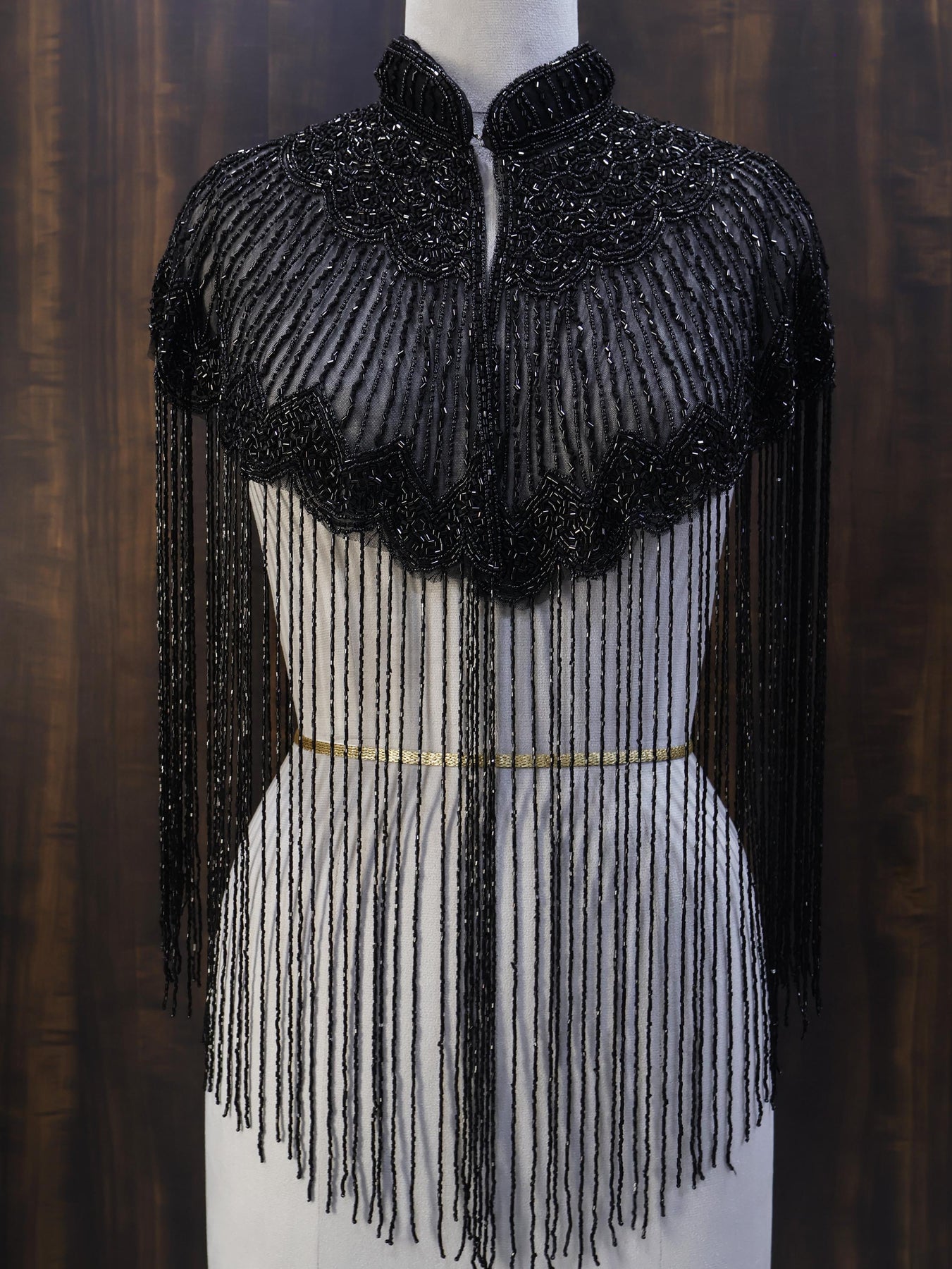 Deep Black Beaded Bridal Cape: Wedding & Evening Cover-Up