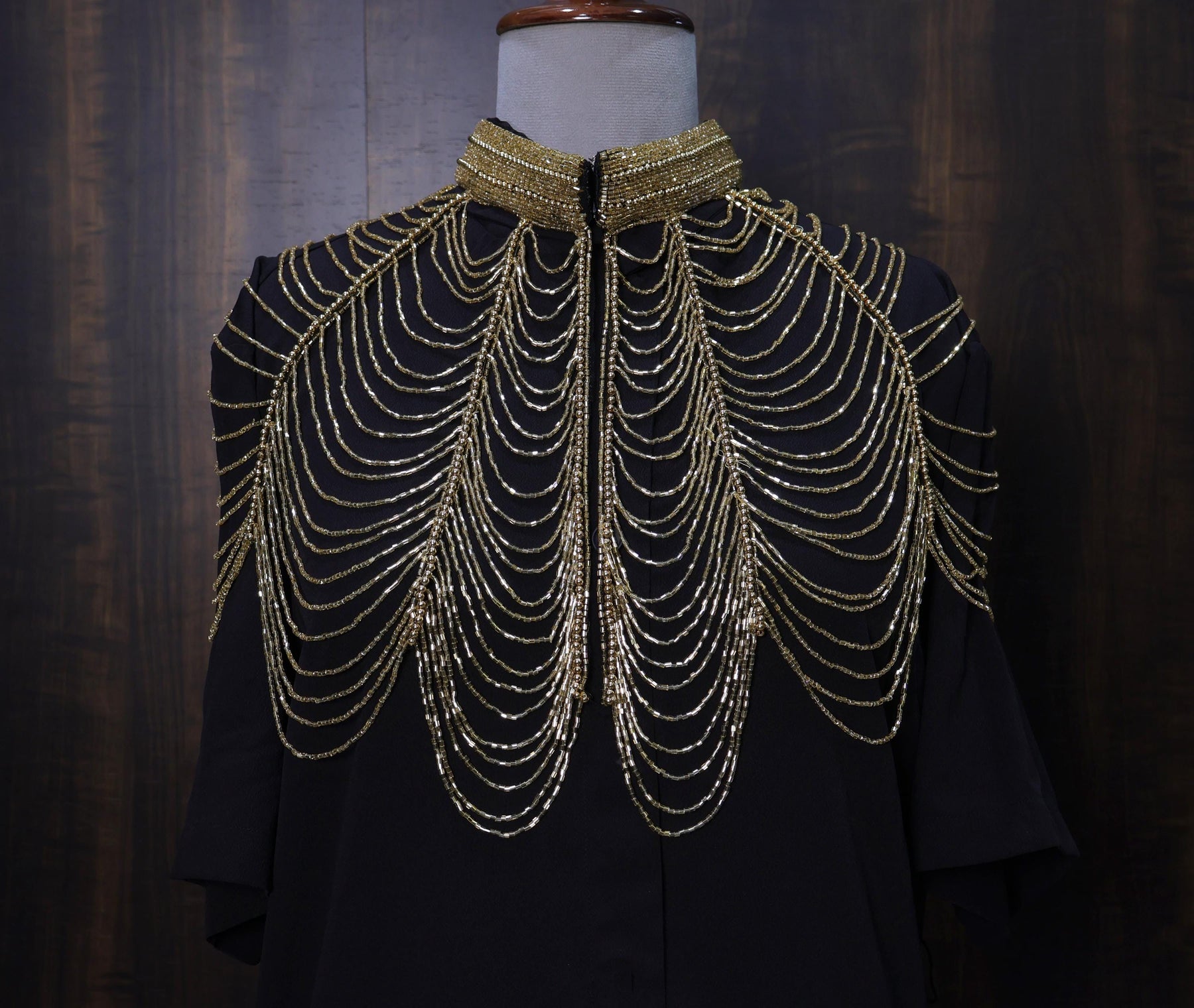 π« Shimmering gold beadwork for an elegant, high-impact look