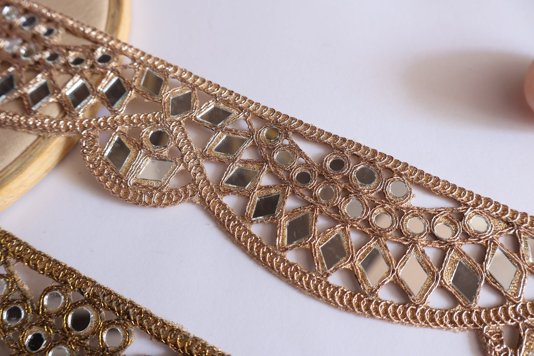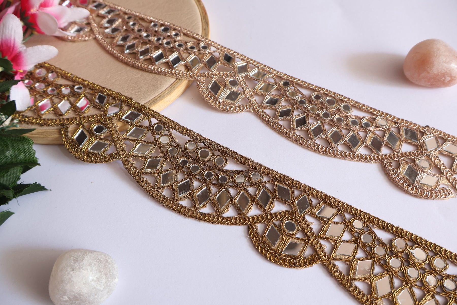Elegant Rose Gold Embellishment perfect for designer clothing, Mirror work lace trim Vine, Bridal dress embellishment.