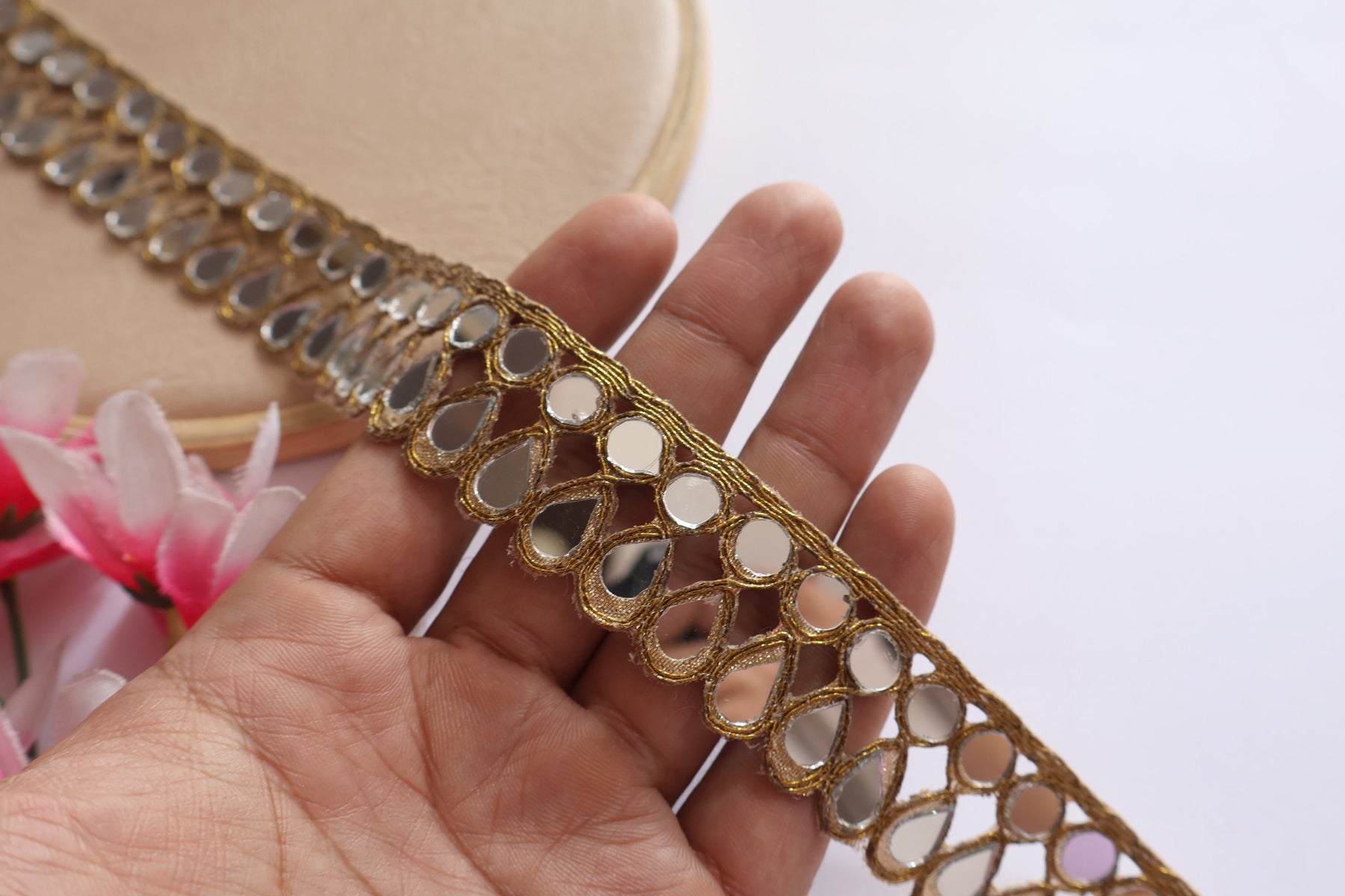 This Indian Handcrafted mirror work lace is perfect for DIY sewing projects, designer cushion crafts, gifting and decorations.