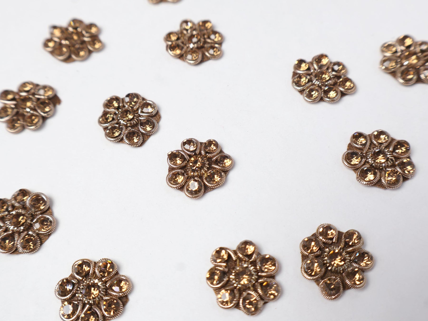 50 Antique Gold Zircon Flower Applique Patches: Mini Embellishments