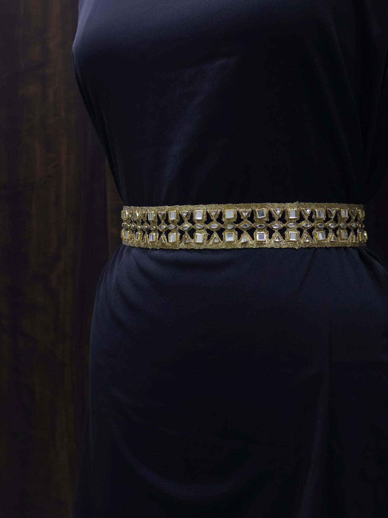 Add a touch of regal elegance to your designs with this **Antique Gold Kundan Stones Trim Lace**. Crafted with intricate detailing, this stunning border features shimmering Kundan stones set on a rich gold base, making it perfect for both traditional and contemporary designs.