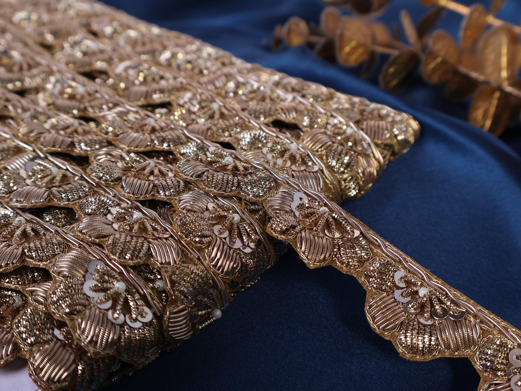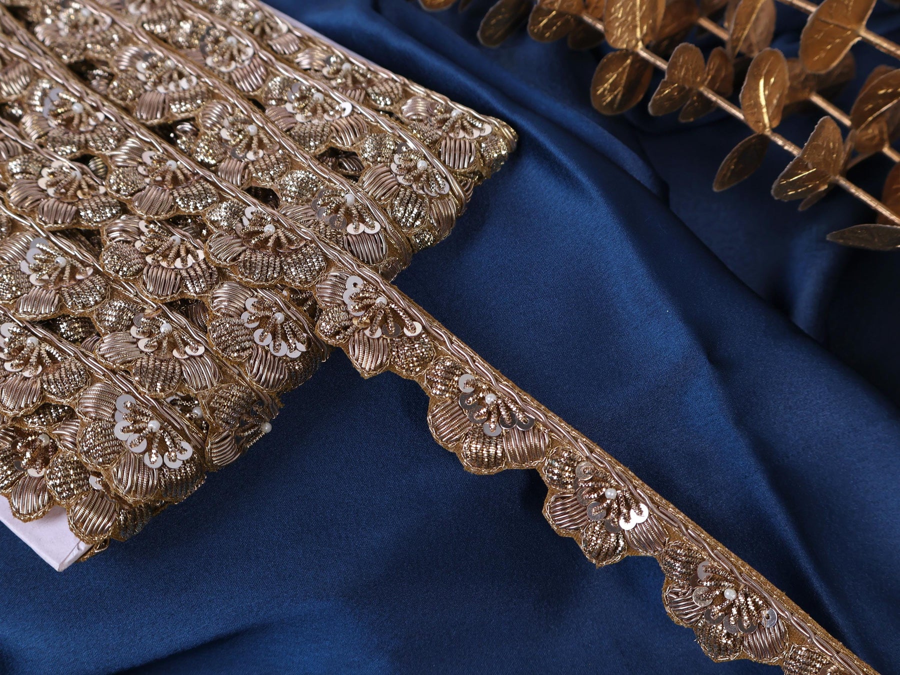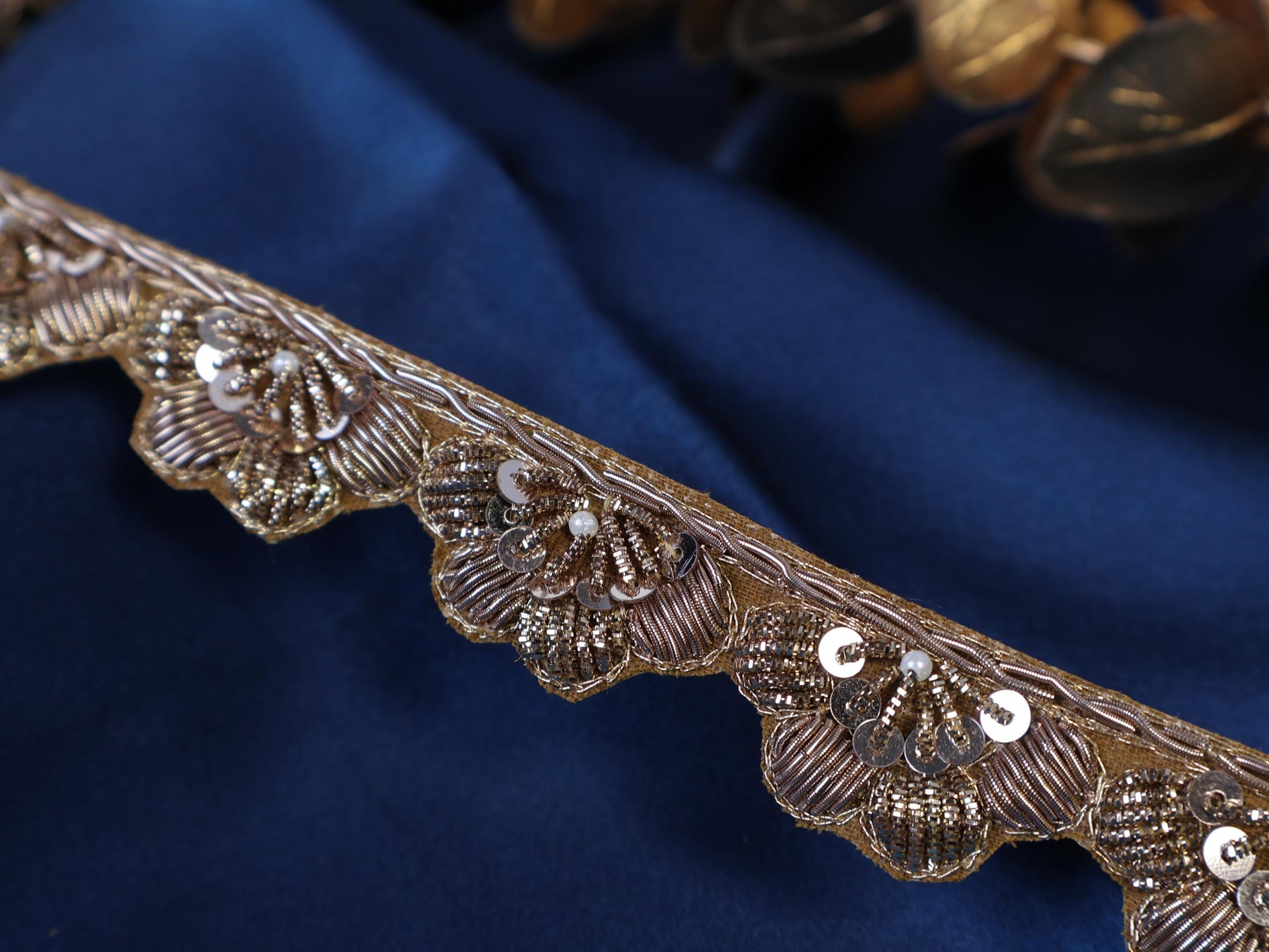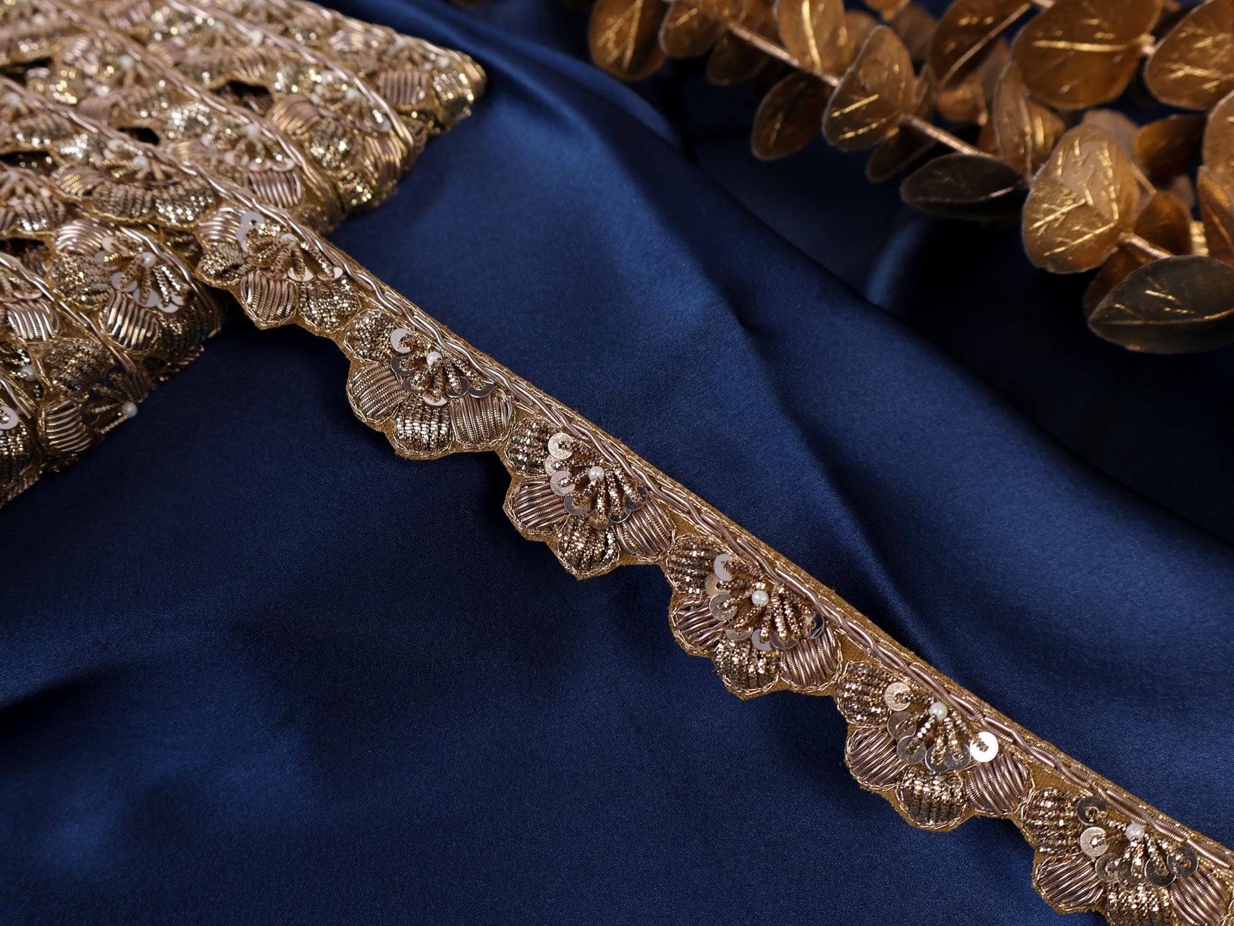 Infuse your designs with vintage charm and artisanal detail using this exquisite Zardozi trim.