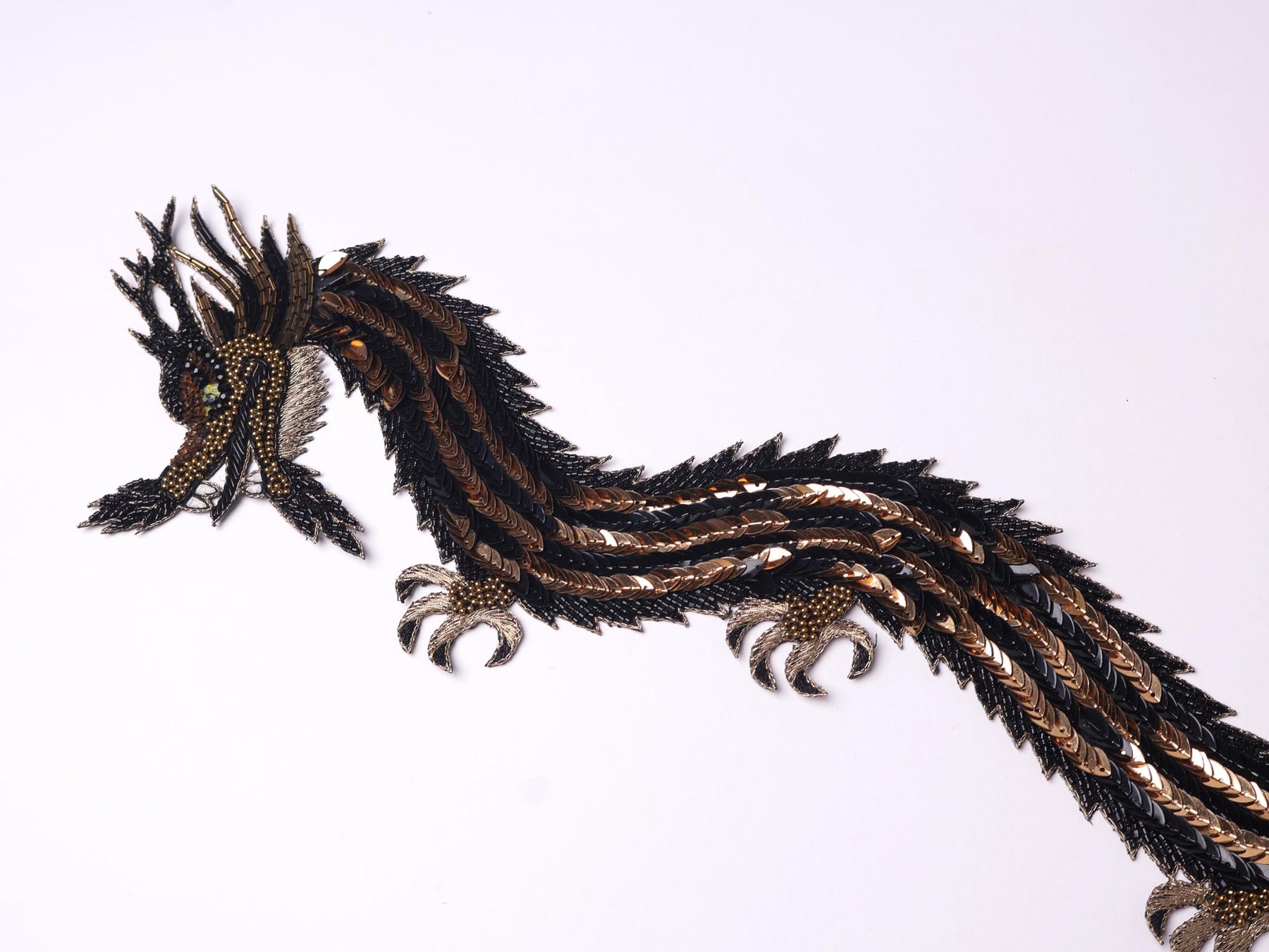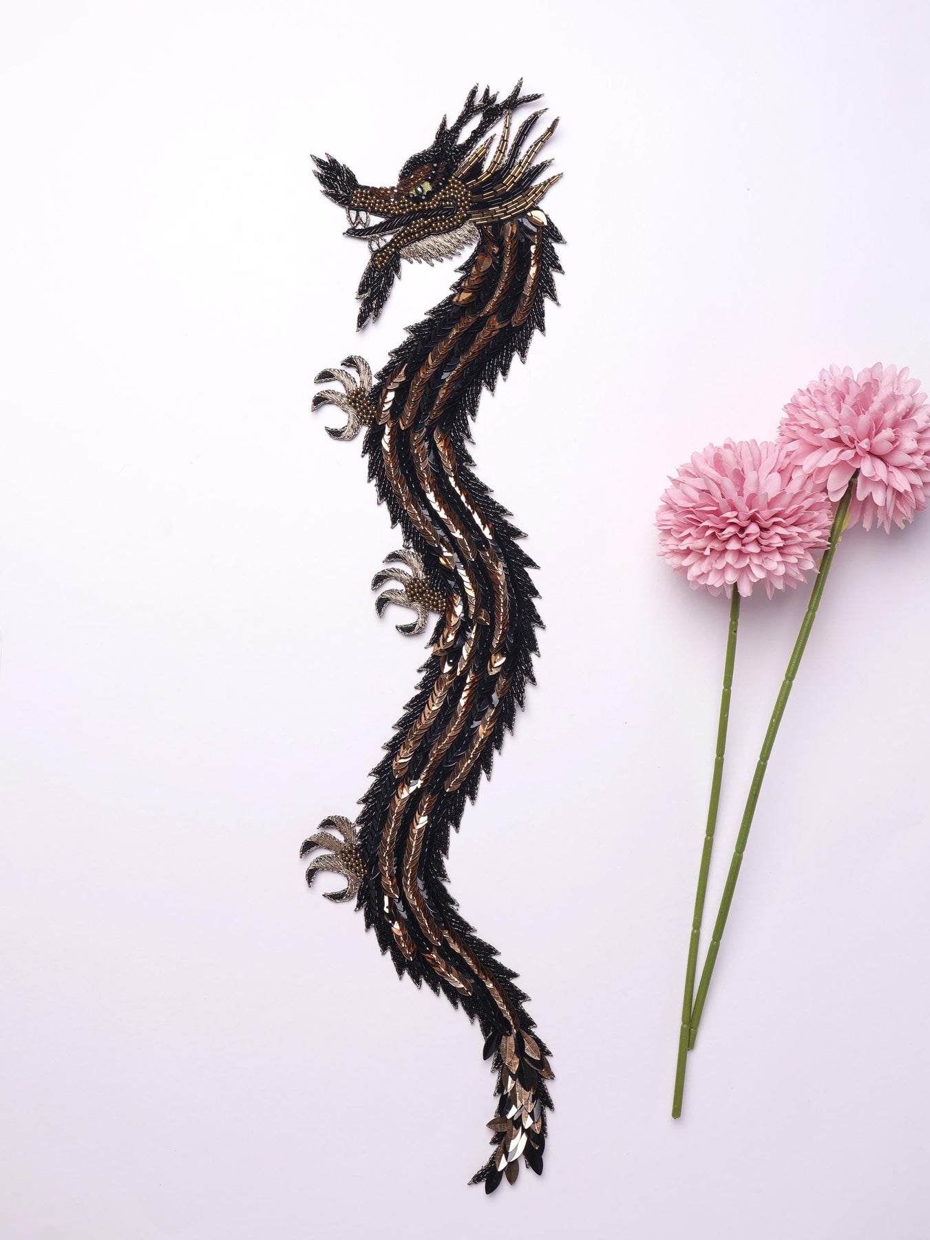 Unleash the power of mythical beauty with this handmade luxury Indian applique patch featuring an intricately embroidered dragon. Designed with a blend of traditional craftsmanship and modern flair, this patch is the perfect accessory to add bold elegance to your creations. Whether you're customizing denim, shirts, or creating an anime-inspired costume, this dragon patch is sure to make a statement.