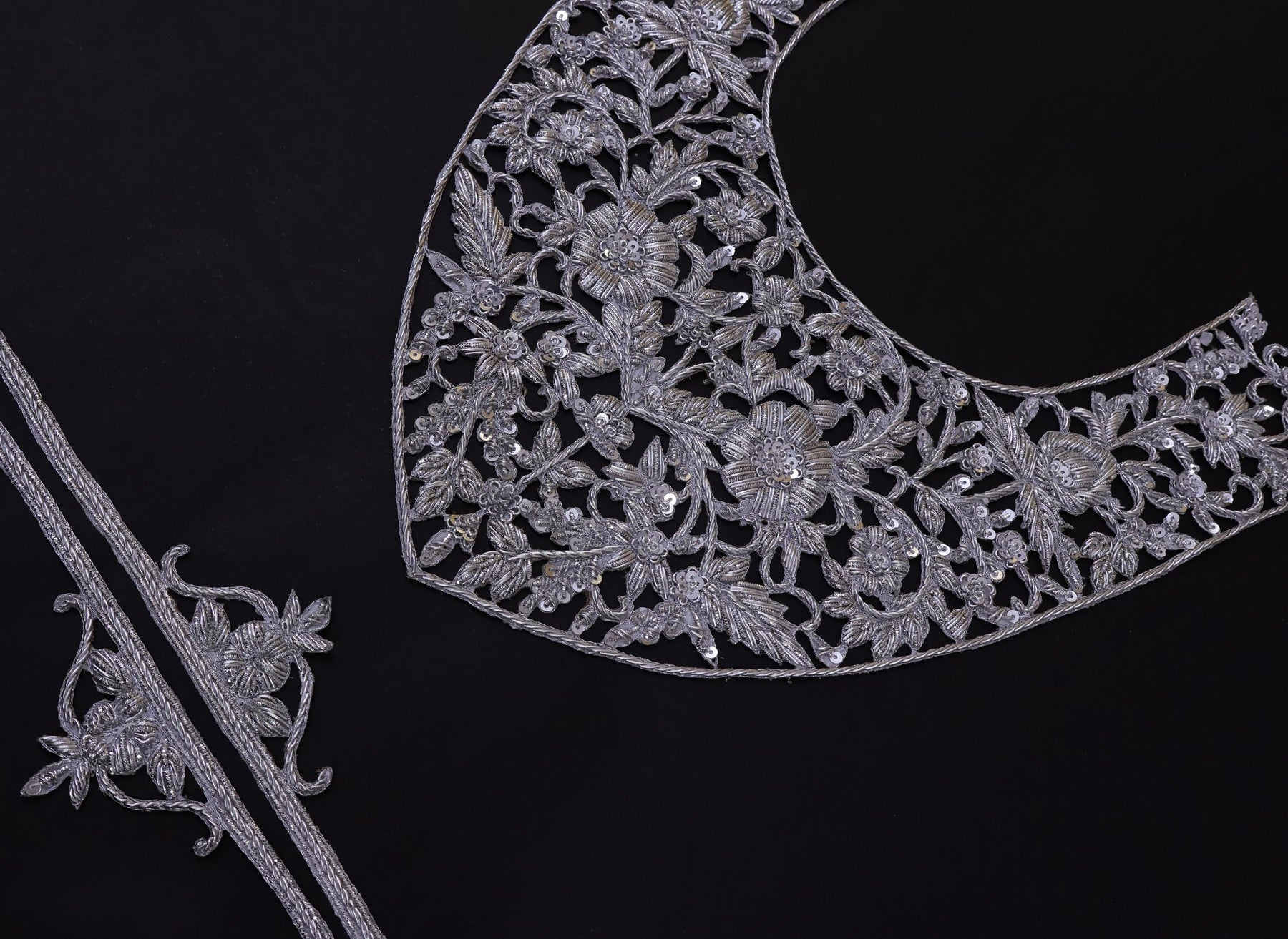 Make your garments truly stand out with this royal silver zardozi patch-where heritage embroidery meets luxury fashion.
